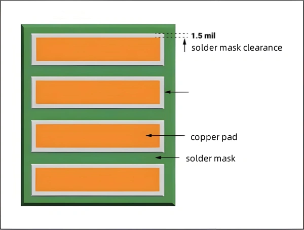 Trace spacing is the minimum distance between two conductors, which depends on materials, copper weight, temperature variations, and applied voltage, as well as the manufacturer’s capabilities.(3) Solder Mask Gap: