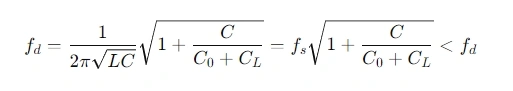 - When the frequency is higher than fsf_sfs but lower than fdf_dfd, the R,L,CR, L, CR,L,C branch becomes inductive. When it resonates in parallel with C0C_0C0, the oscillation frequency is:
