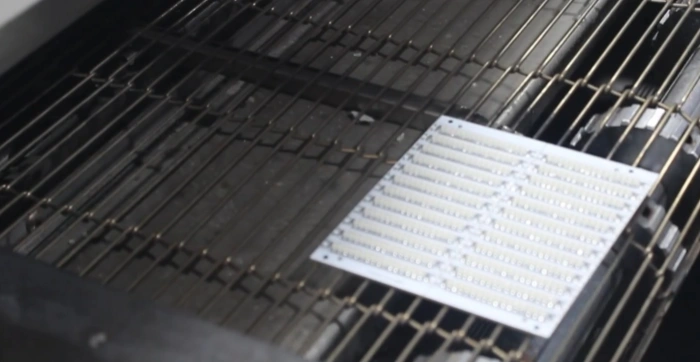 Generally, the reflow oven moves the PCB forward using chains, supporting the entire board from both sides. If the board has heavy objects or is too large, due to the board’s weight, it may sag in the middle, causing the board to bend.