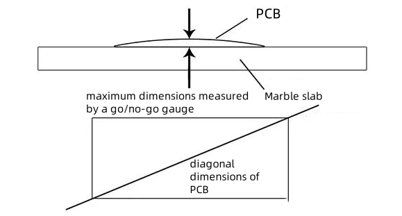 Warping = Single-angle warping height / (PCB diagonal length * 2) * 100%